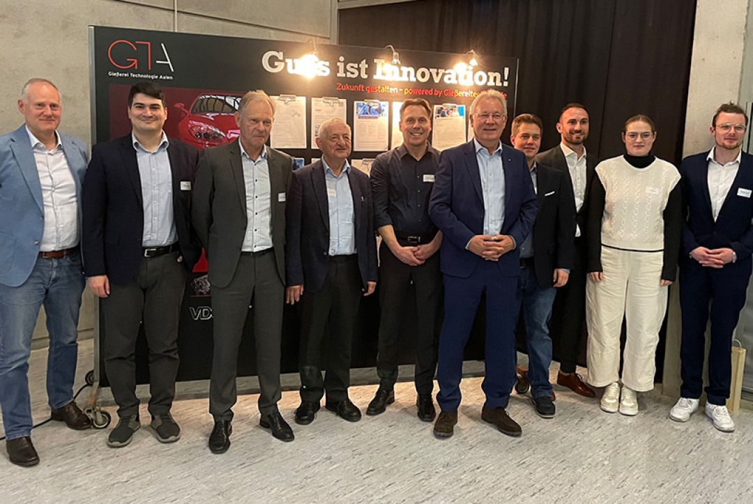 In his welcoming speech, Kallien (pictured, 5th from right) addressed the economic challenges facing foundries. In this context, he spoke about topics such as energy efficiency and resource conservation, which are particularly important for the industry. According to the professor, the exchange of knowledge is “particularly important” in these areas.