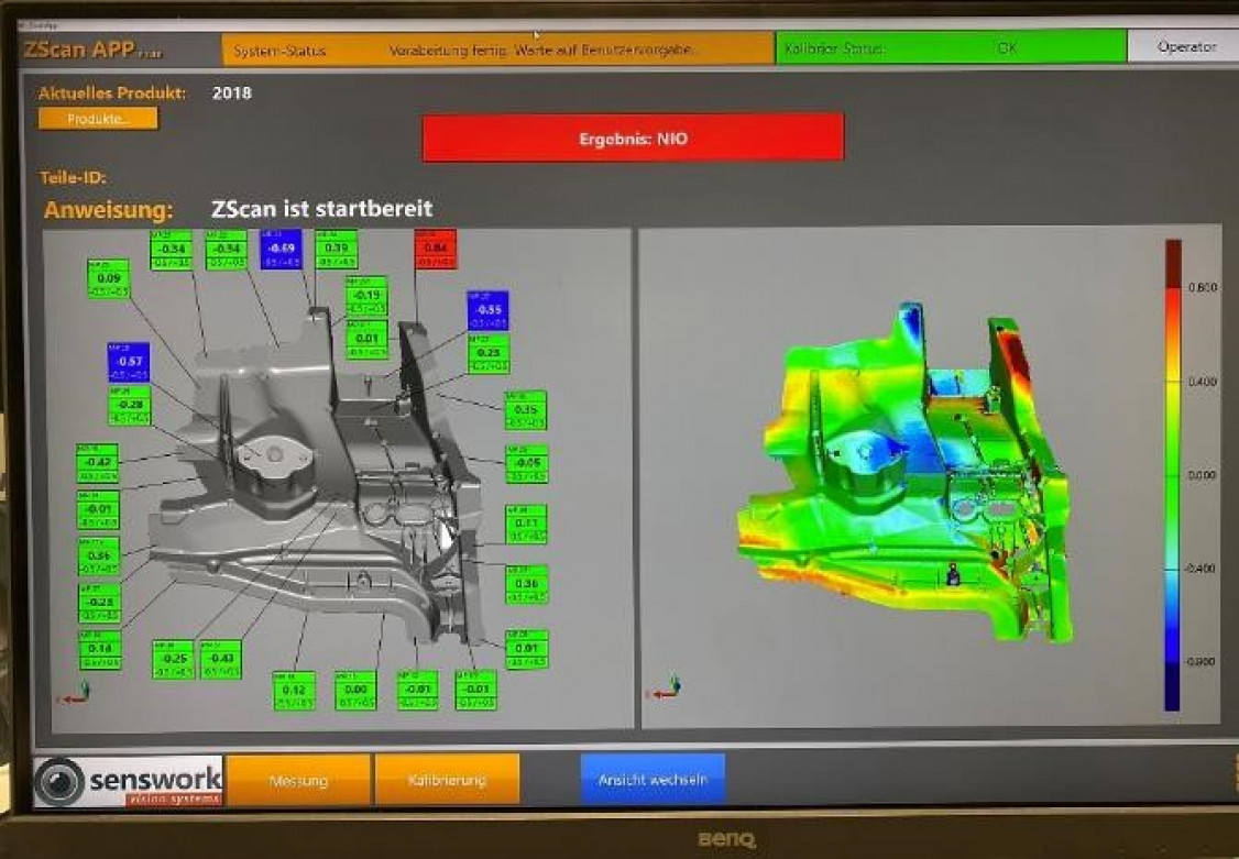 Large, geometrically complex components such as die-cast aluminum parts for the automotive industry have so far been difficult to measure validly. Testing in the measuring room requires a corresponding capacity and is time-consuming; so-called gage check gauges require a certain planning, procurement and implementation time. An innovation opens up new possibilities: senswork developed the 3D measuring system ZScan, a solution that is always ready for use and provides a valid measurement result in seconds. And it does so directly in production.