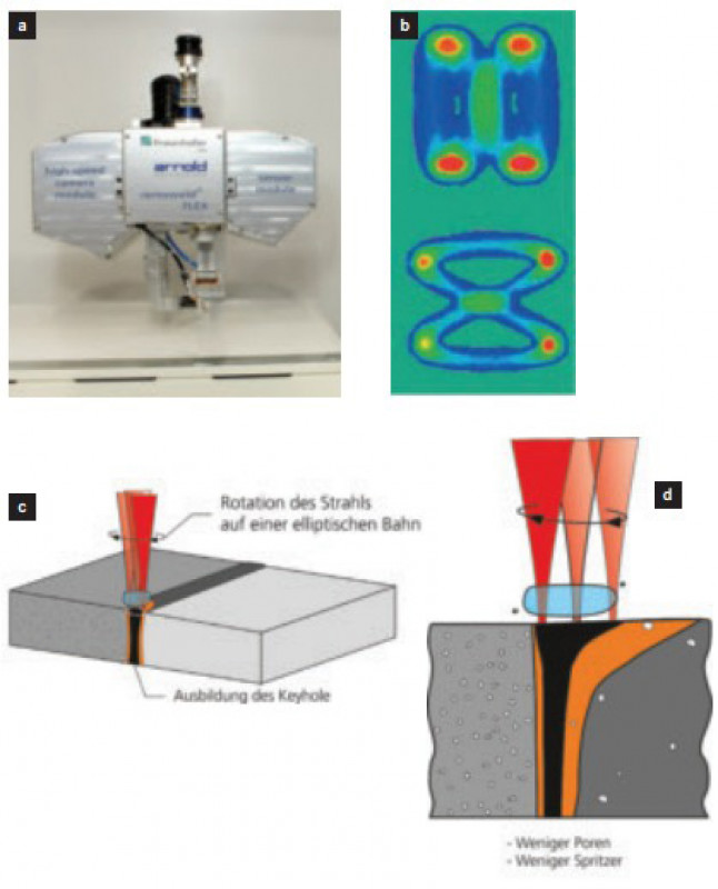 Anders stellt sich die Situation mit der gegenwärtigen Entwicklung der Laserstrahlquellen dar. Getrieben durch die kontinuierliche Weiterentwicklung der Strahlwerkzeuge in den letzten Jahren und den erheblich reduzierten Investitionskosten pro Kilowatt Laserleistung steigt dessen Attraktivität für die Massenproduktion weiter. Ergänzt durch die Verfügbarkeit von effektiv arbeitenden Optiksystemen zur Strahlablenkung eröffnen sich neue Lösungsansätze, insbesondere für den Einsatz bei schwierig schweißbaren Werkstoffen. Beim Laserstrahlschweißen (LBW) können nun Strahlquellen höchster Qualität eingesetzt und durch geeignete Strahlablenkoptiken eine hochfrequente Strahloszillation im Schmelzbad erzeugt werden. Dies ermöglicht reproduzierbare, qualitativ hochwertige Schweißverbindungen. Motiviert von der Idee, die Prozessführung so weiterzuentwickeln, dass bestehende Qualitätseinschränkungen überwunden werden, war das Forschungsziel des am Fraunhofer-IWS entwickelten Ansatzes, den Schweißprozess aktiv durch hochfrequente Strahloszillation zu beeinflussen und dadurch die Schweißnahtqualität deutlich zu erhöhen.